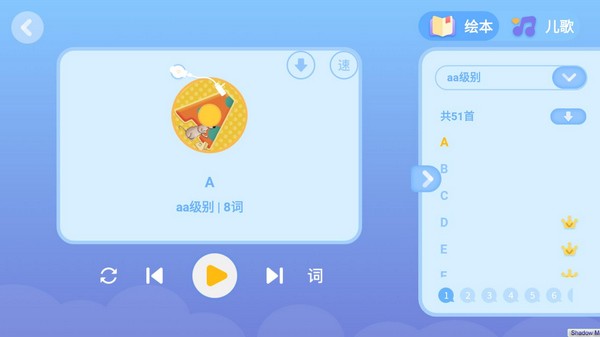 精致原版动画、精选启蒙ABC儿歌,让孩子们在优美的儿歌中快乐学习,随时随地磨耳朵。以及2000+绘本音频支持单曲循环,自定义播单,帮您随时随地磨耳朵。