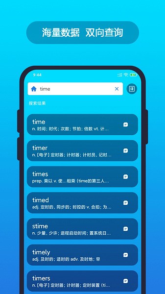 英汉随身词典app是一款非常好用的手机词典软件,平台内采用了百度番茄引擎,为用户们提供了超多英语单词,大家可以输入自己不熟悉的单词进行查询,随即就会为大家显示出该单词的发音、释义、例句等,是大家生活中必不可少的词典工具。除此之外,对于正在准备四六级英语考试或者中高考的学生们来说,它也可以很好满足大家的学习需求。