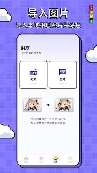 1、登录涂色龙app,点击上方的【像素涂色】;或是下方的【创作】进行涂色创作;