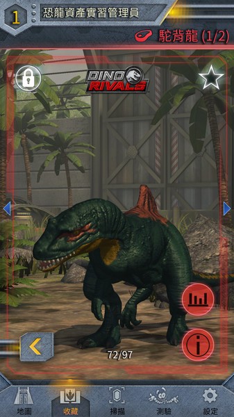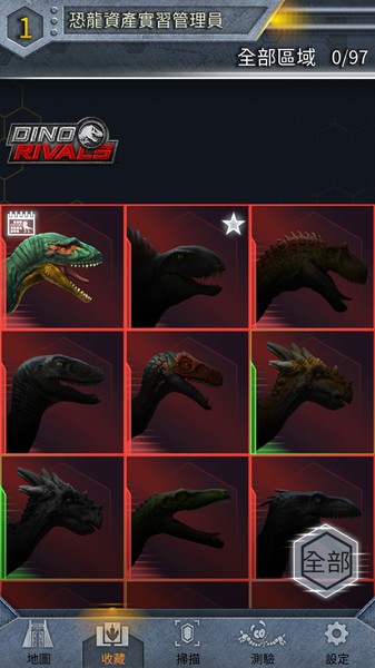 4大区域,供您探索,探索侏罗纪世界地图,记得要在全部4个不同的栖息地收集恐龙;