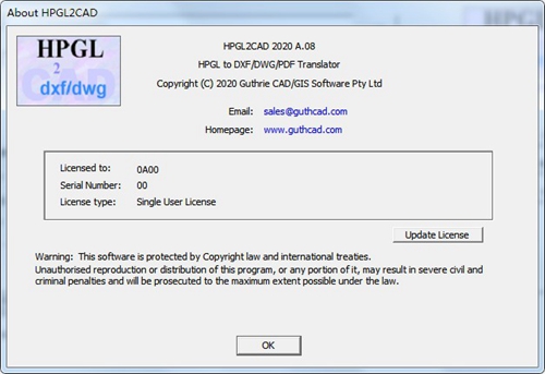 安装后将破解补丁hpgl2cad.exe复制替换到安装目录,之后运行hpgl2cad.exe即可。