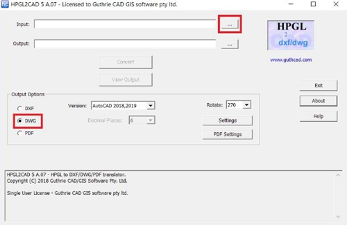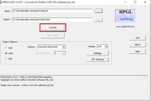批量转换:您只需在输入和输出中键入“ *”(星号),“.”(点)和文件扩展名。 例如:输入中的* .plt和输出中的* .dwg。 然后按转换按钮。 如果是HPGL文件,请在“输入”中键入* .hpgl。