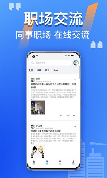 职场交流:与同事在线交流,优化简历服务,助力求职。