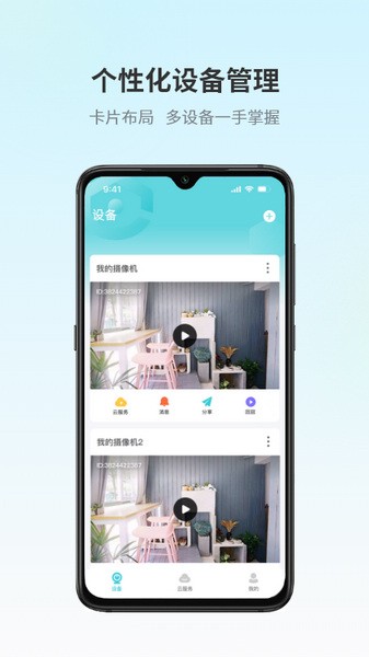 视频服务:通过云视频服务,查看实时监控,调取回放画面。