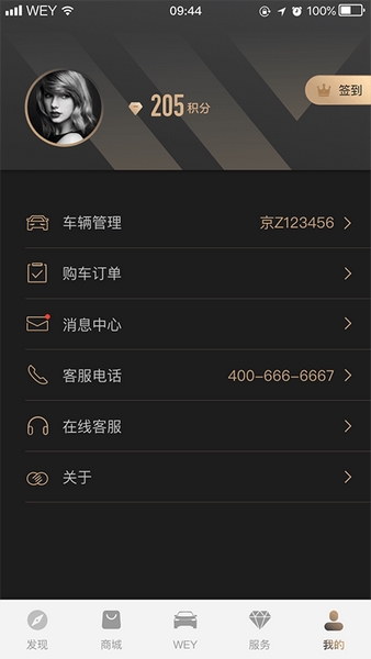 2.【WEY安全】车辆实时监控,随时了解车辆里程、油量、胎压及胎温; 车辆异常报警、电子围栏防盗; 争分夺秒,只为保障您的生命与财产安全; 有呼必应,全方位呵护 。