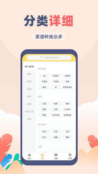 3、分类详细,菜谱种类众多;