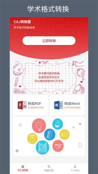 1、打开“caj转换器”app,进入“caj转换”页面,点击“立即转换”