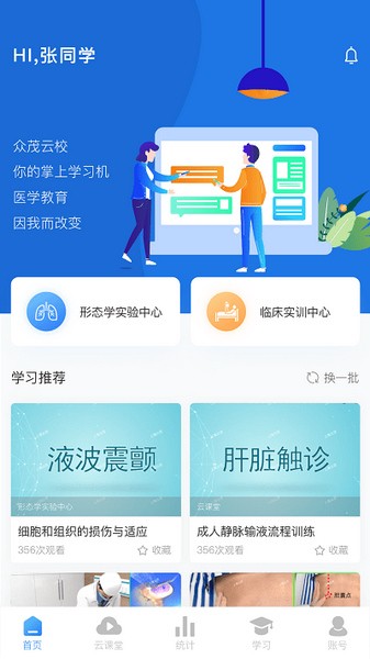 众茂云校app是一智慧医学教育平台,精选海量医学相关课程,在线学习,看视频学知识,超多内容尽在其中,在线探讨感兴趣话题,让医学在线教育更轻松。引领智慧医学教育3.0时代,PC端支持虚拟实验室、云课堂、大数据、在线考试等多功能模块,移动端便携式学习,让学习更轻松。