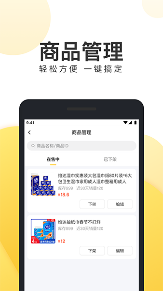 3、在线实时管理商品,随时可以创建新的商品标签、添加新的商品以及下架商品;