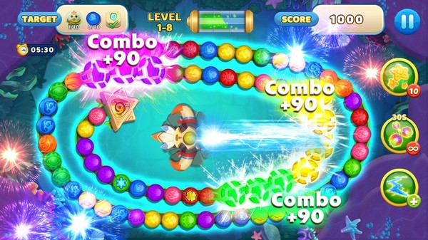 进行更专业的小球射击,需要撞击相同颜色的大理石祖玛。