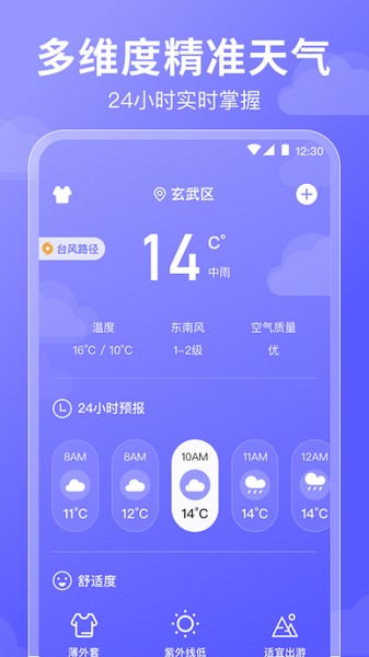 多维度精准天气,24小时实时掌握
