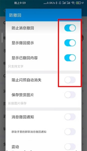 6、至少按图中的设置,第一项肯定得打勾,不然不会防止撤回,其他选项根据个人需要选择即可。