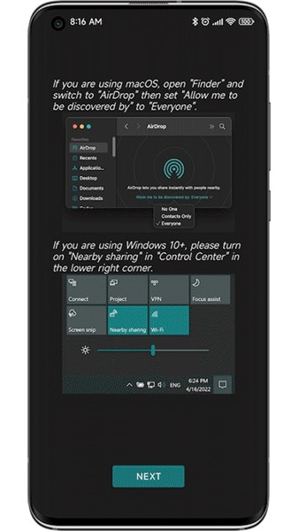 1、打开AndDrop app,如果您需要连接使用的是macos,请在访达中打开隔空投送,并将发现我的设置为所有人