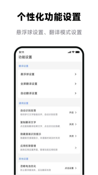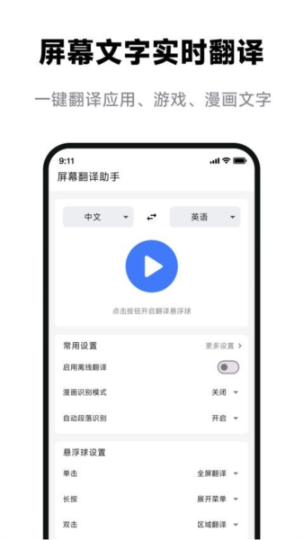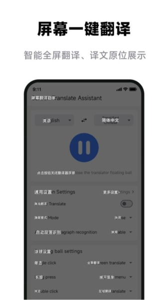 6、个性设置: 用户可以在软件上进行悬浮球和翻译功能的个性化设置,更好地迎合自己的习惯。