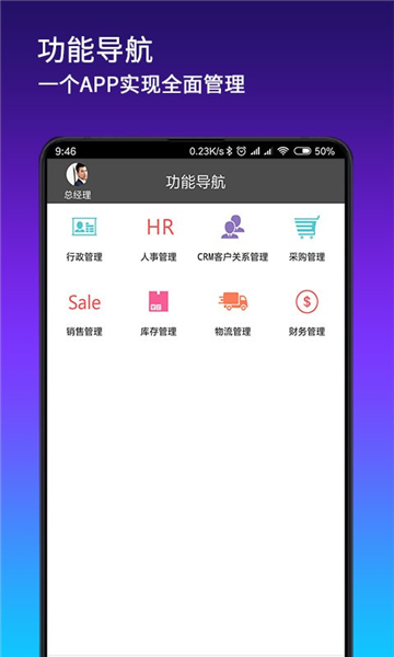 3、点击功能导航,快速选择各种功能进行企业管理,更轻松的经营公司
