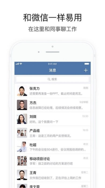与微信一致的沟通体验,简单易用