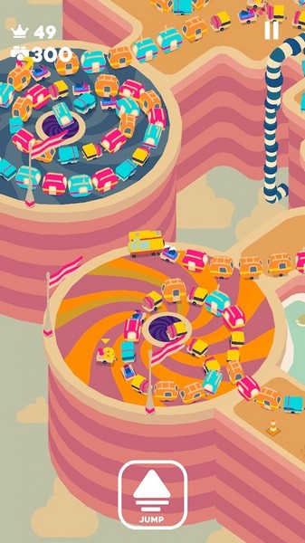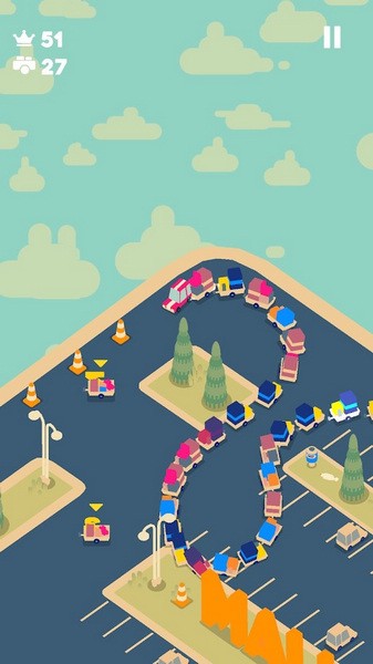 升级你的汽车,挑战逐渐升级的难度,完成不同的挑战任务和比赛。从一辆车开始,就像贪吃蛇一样,加速前进,慢慢行驶,收集更多的汽车随你同行。游戏中,五颜六色的大篷车让你解锁新的成就,但随着车队的延伸,小心不要撞到其他车辆。