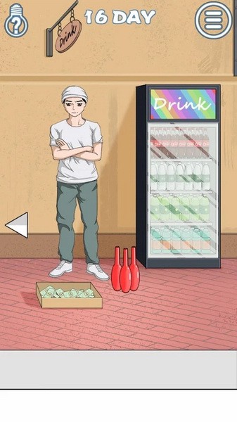 第十六关:点男生的裤兜拿钱,去右边的柜子拿可乐,将可乐放在红瓶子中间,把钱给杂耍的人,可乐摇晃过后拿给女生。