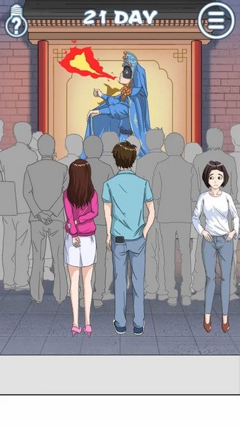 第二十一关:先点杂耍的人,再点白衣的妹子。