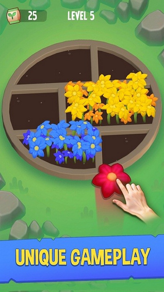游戏中独特的机制要求玩家发挥想象力和思维能力,合理安排花朵们的位置。多样的花朵和花园造型,以及简约而多汁的动画,都为游戏增色不少。拼图问题逐渐增多,挑战玩家的脑力,但操作方式简单易上手,让人沉浸其中。