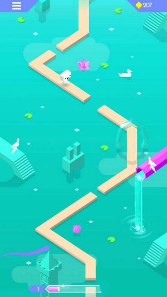 在貌似平静的湖面上穿梭,在狭窄的平台上跳跃,采用镜面折射,会给你的视觉上带去一些挑战,