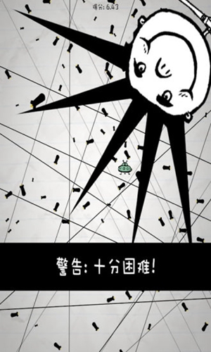 没错,在这款游戏里,你操纵的小飞碟什么都不允许碰到!画面里无数密密麻麻的飞弹也好,突然乱入的各种卡通图案也好,重点在于,卡通图案!一点提示都没有,突然一下子就窜了出来,躲都没法躲!