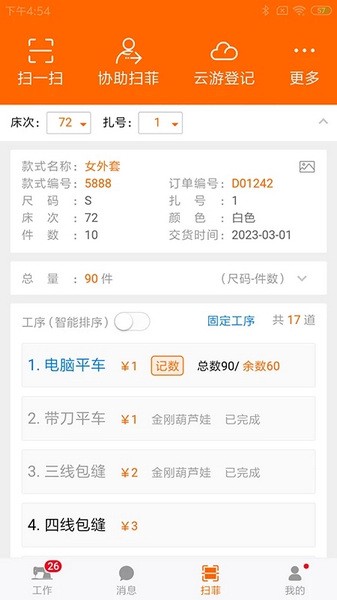 菲票工序登记井然有序,每一道都显示有登记人的姓名和登记时间,防止乱扫菲,或者扫错菲。让企业更好的管理