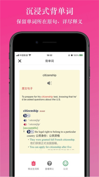 4、沉浸式背单词,保留单词所在原句,详尽释义