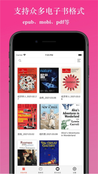 1、支持OPDS、web图书源:用户可以自行添加图书源,让您可以汇聚全网的优质英文阅读资料;