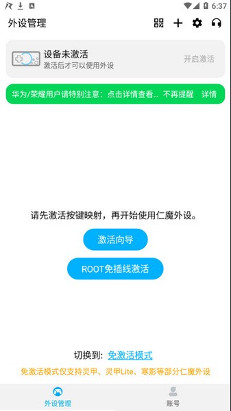 3、点击外设管理,这里需要激活设备,点击开启激活就可以设置;