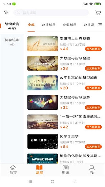 3、接着挑选自己需要的课程,点击后面的【加入购物车】按钮。