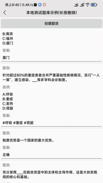 最近的更新还增加了更多功能,比如支持7个选项的选择题、优化了题库上传速度以及修复了一些已知问题。总的来说,全能试题app是一个非常强大的学习辅助工具,尤其适合需要刷题的学生使用。如果你正在为考试发愁,这款app绝对值得一试!