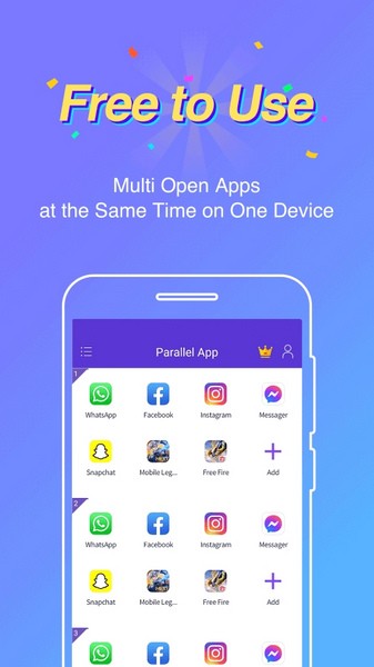 Parallel App破解版是一款非常好用的应用多开工具,支持在同一部手机上同时登录多个账号,比如WhatsApp、Facebook、微信、QQ等,还能双开热门游戏,让你轻松实现多任务操作。软件界面简洁易用,添加应用后就能生成分身,下次登录直接切换账号,特别方便。
