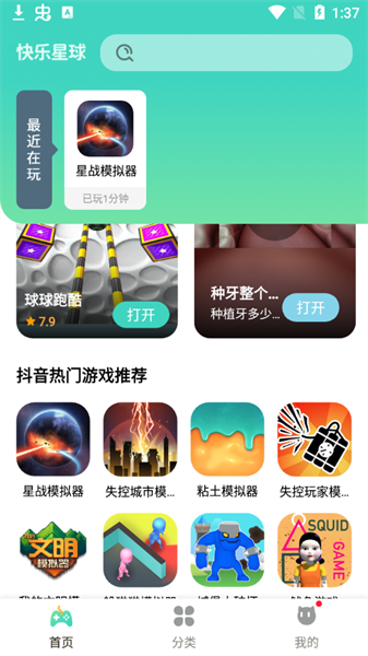 1、 下载并安装快乐星球游戏盒子。