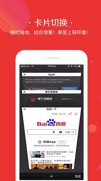 【扁平设计】贴心布局,强化搜索,多页签切换极致为用户提供简单、安全的浏览体验。