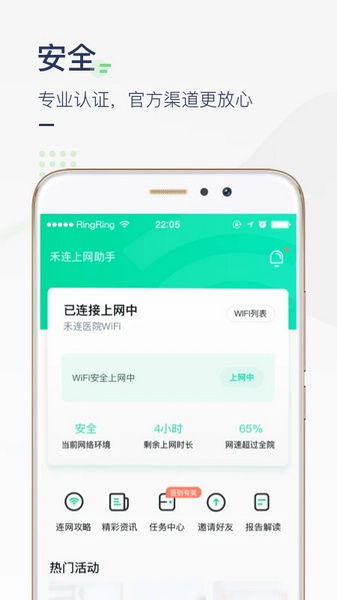医院上网助手由禾连科技与全国各大医院联合打造,为在医院的患者及其家属提供安全高速的免费wifi网络。