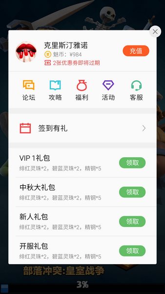 登录app还可以进行签到,完成签到活动任务即可获得游戏福利礼包;