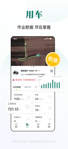 移动端就能够了解到农业机械工作的状态,还有当前的分布位置,这些都清楚;