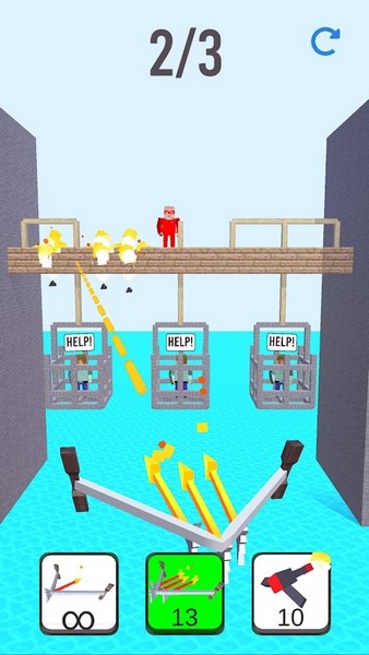 看你的目标是什么!非常小心地拆除像素建筑,因为您的主体可能被敌人囚禁。拯救所有人质的生命以完成关卡!