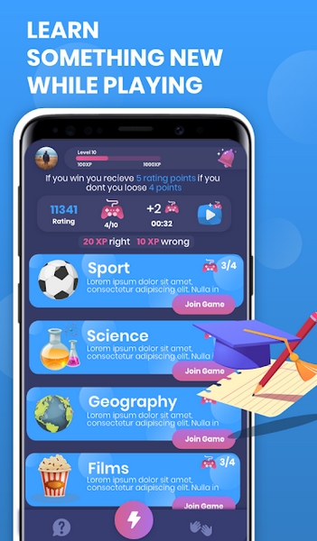 最好的测验类型的游戏现在出来了。回答问题,邀请你的朋友和他们竞争。