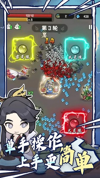 我的仙术有点厉害这款游戏的主要玩法是我们控制人物躲避伤害或者在一定的数值内直接抗伤,来持续输出击杀闯关,目前来看一关就是20轮。