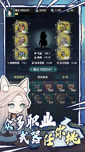 1、众多职业、道具和武器可供选择,搭配属于你的最强流派