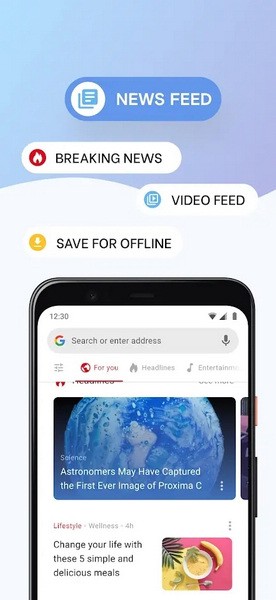 在我们高度智能化的人工智能新闻引擎的支持下,经过重新设计的新闻订阅功能能够让您通过轻扫屏幕翻阅浏览器内精选的个性化新闻频道、订阅喜欢的主题并保存文章以便在稍后阅读。阅读人工智能根据您的兴趣为您量身定制的新闻,及时了解天下事。