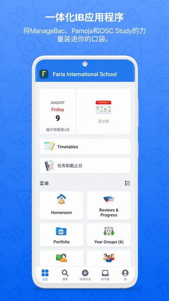 Managebac 是一款专为IB和IGCSE课程设计的教育管理App,支持学生、老师和家长高效互动。对学生来说,这款App能帮助他们管理作业、设定目标、记录学习成果,还能参与课堂活动和项目计划;对老师而言,可以方便地布置任务、批改作业、管理学生成绩,同时还能处理考勤和纪律问题;对于家长,也能实时查看孩子的课程表、成绩和老师的反馈,与学校保持紧密联系。