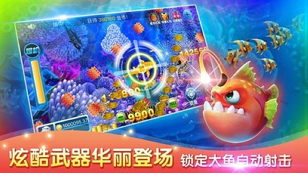 4、街机捕鱼玩法的全新升级,游戏内容更加丰富,爆机模式、精准锁定、自动射击,躺着也能赚金币!