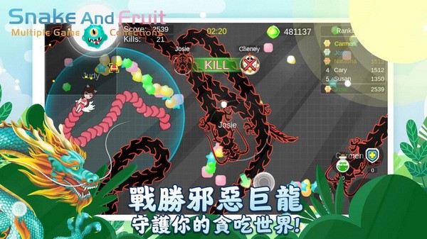 游戏内融合了蛇蛇大战模式、武者大乱斗模式等多个模式,每个模式都有其独特之处。尤其是老鹰模式,让你挑战躲过老鹰的抓捕,考验玩家的技术。同时,游戏内的视觉冲击充满张力,击中水果还能获得奖励,让游戏充满了创意和惊喜。