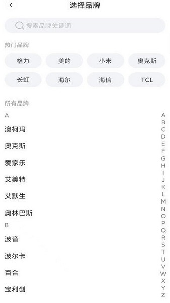 ·品牌选择,这里还能让用户对各种适合的空调品牌等进行选择,让整个的连接效率能得到加持