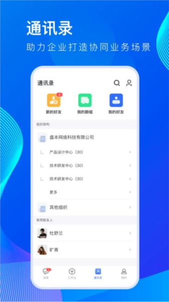 1、通讯录管理:可将领导、同事信息一键导入,便于内部联系和沟通。