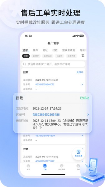 这款韵达客户管家app安卓版主要是为韵达员工设计的一款工作管理神器,功能挺全面的。你可以在这里安排订单和工单处理计划,还能通过图表形式直观查看数据,方便又高效。特别是发起和跟进工单的功能,让工作流程变得更清晰。另外,查件、客户管理和财务账单这些功能也都很实用,能帮用户减轻不少负担。