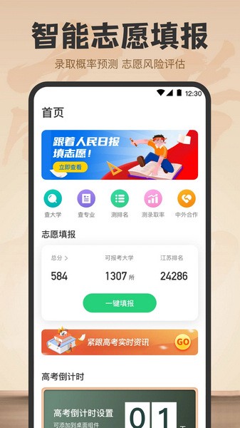 阳光志愿填报app是一个特别实用的高考志愿填报工具,它能帮学生和家长解决填报志愿时的各种难题。这个app里有全国各高校的详细信息,还能根据你的成绩预估排名和录取概率,这样你就能更清楚自己适合哪些学校了。最棒的是,它还能提供科学的志愿填报方案,包括冲刺、稳妥和保底的选择,让你在填报的时候更有信心。